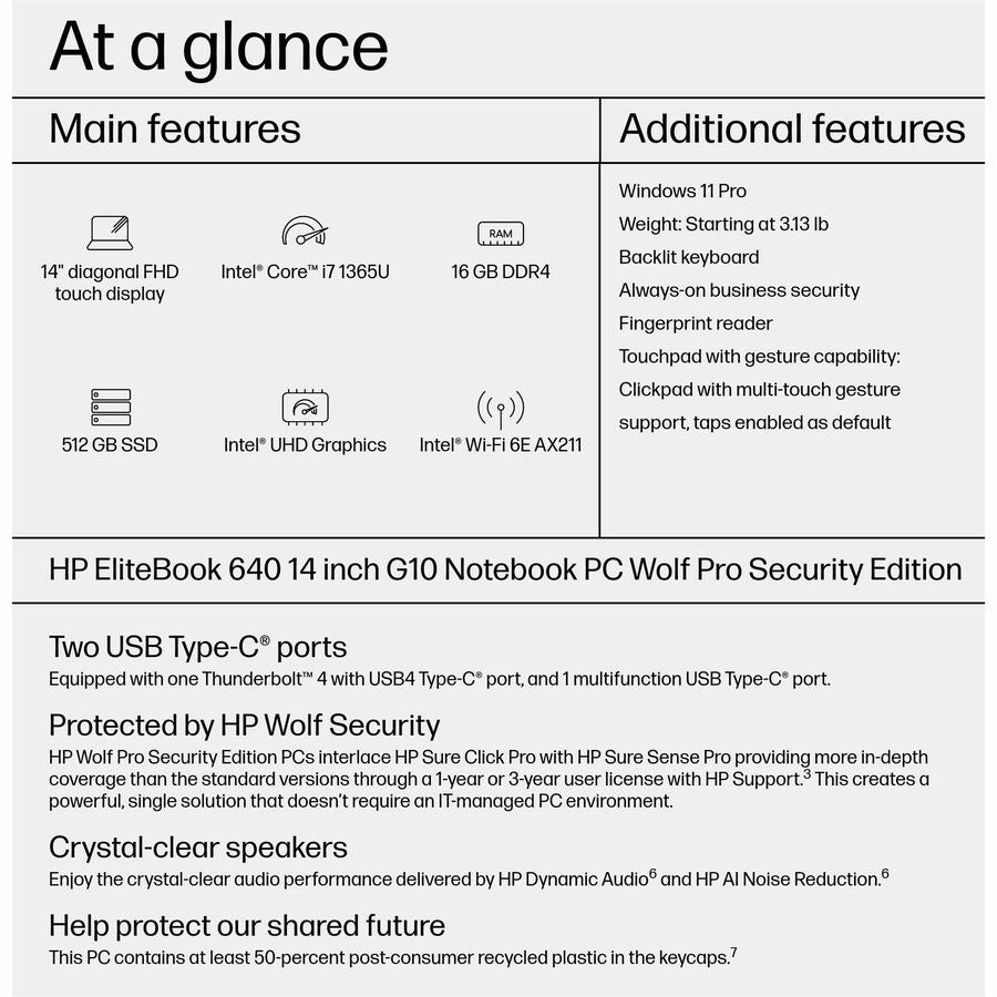 HP EliteBook 640 G10 14" Touchscreen Notebook - Full HD - Intel Core i7 13th Gen i7-1365U - 16 GB - 512 GB SSD - English Keyboard - Pike Silver Aluminum - Intel Chip - 1920 x 1080 - Windows 11 Pro - Intel UHD Graphics - In-plane Switching (IPS) Technology - Front Camera/Webcam - IEEE 802.11ax Wireless LAN Standard
