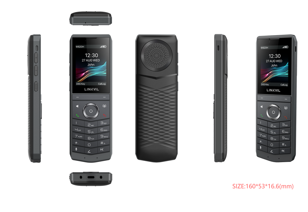 LINKVIL by Fanvil W620H is a portable cordless phone designed for mobile communication. It pairs seamlessly with the LINKVIL Cordless Multi-cell System Base W710H to deliver stable and efficient communication in diverse wireless environments. With built-in Bluetooth 5.0, it can connect to Bluetooth headsets, freeing your hands for multitasking. Equipped with a 3000mAh rechargeable battery, it supports up to 13 hours of talk time or 240 hours of standby. Ideal for enterprises, shopping malls, residential areas, hotels, and warehouses, the W620H ensures a high-quality mobile communication experience.