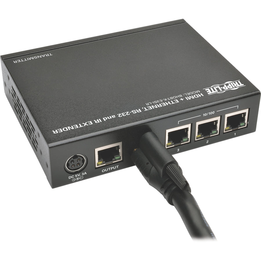 In addition to HDMI, RS-232 and IR signals, this extender kit features three built-in 10/100 Ethernet ports on both the transmitter and receiver units. This allows connected devices, such as a Blu-ray™ player, cable/satellite box, and HDMI television, to communicate with each other and access online content via LAN.