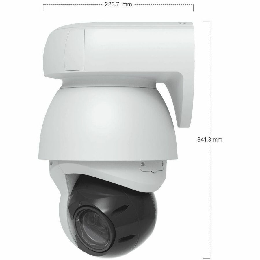 Industrial-grade 4K PoE++ PTZ camera with enhanced AI capabilities, 22x optical zoom, and long-range adaptive IR LED night vision, white